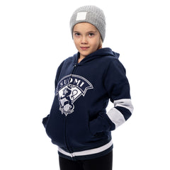 Tummansininen lasten vetoketjullinen pelipaitahuppari